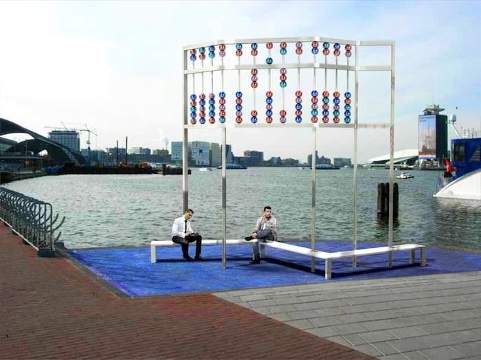 Aanwezig zijn o.a. Louise van Deth (directeur van het Aids Fonds) en Jean-Michel Othoniel, de Franse kunstenaar, die het ontwerp van de telraam heeft gemaakt.