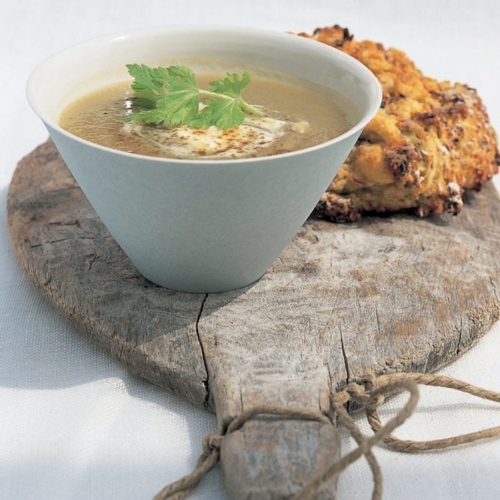 Maar ik wilde qua smaak wat frisser en fruitiger, en dan is soep een fijne variatie voor zowat iedere groente, want soep kun je licht maken als je zelf wilt. Ik maakte van een hele selderijknol een heerlijke crème, met een frisse en toch romige smaak, met als voorjaars-touche gesnipperde lente-uitjes erover.
