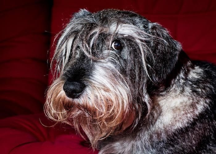 Vladimir (59) is het baasje van Timo (9), een Middenslagschnautzer.